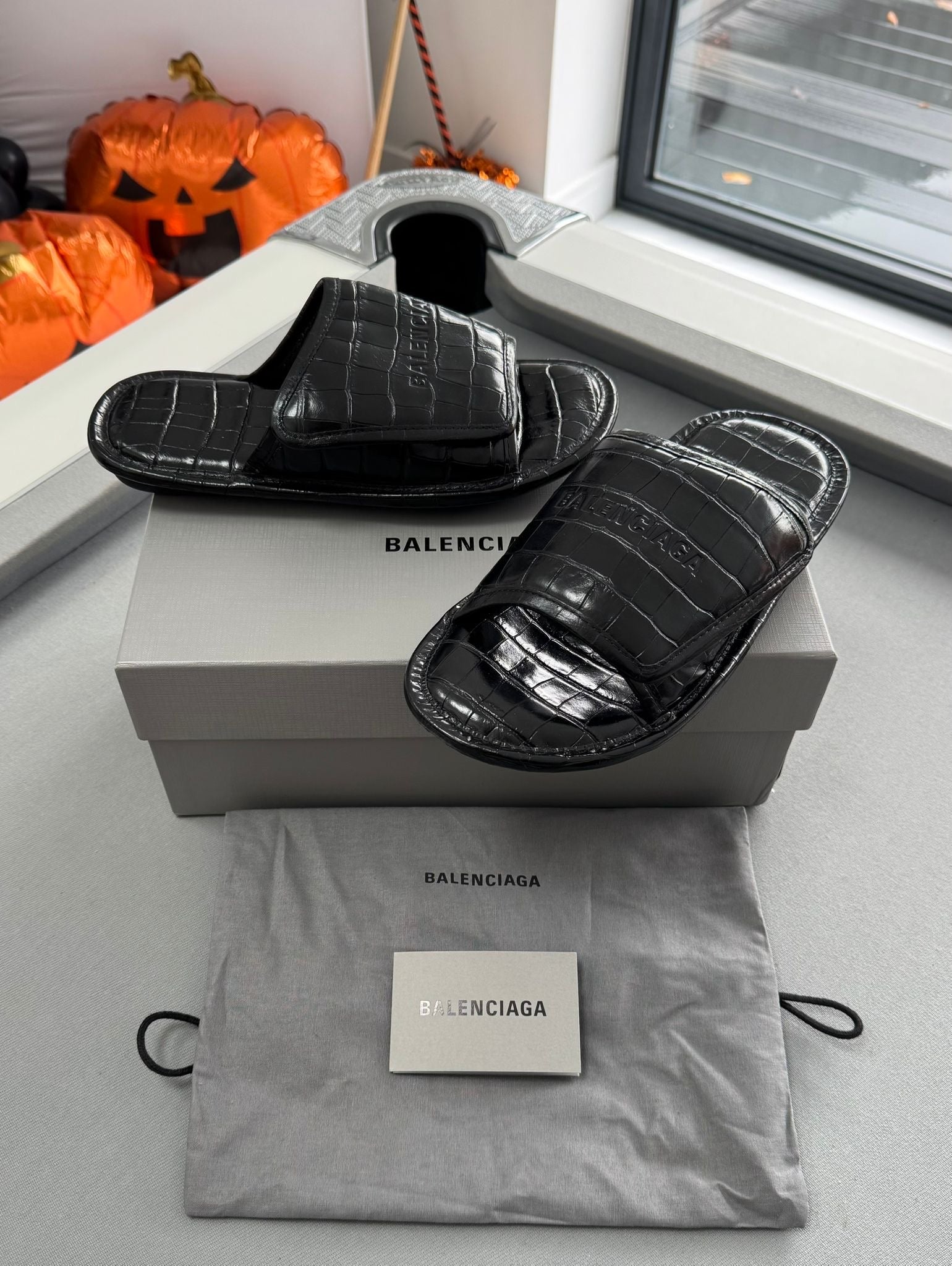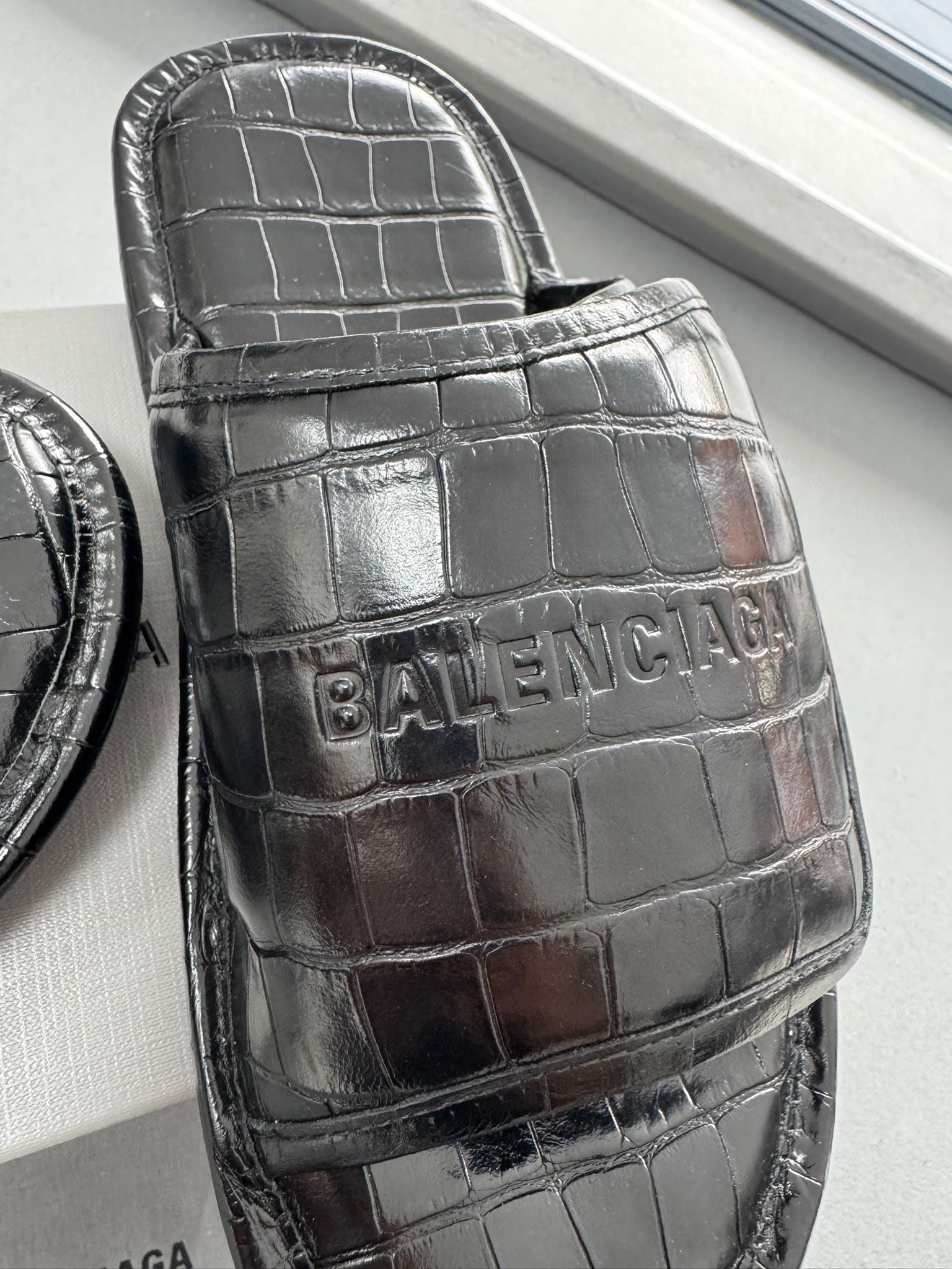 Balenciaga Home Logo And Crocodile-Embossed Leather Slider Sandals - Size: UK6 (EU39)