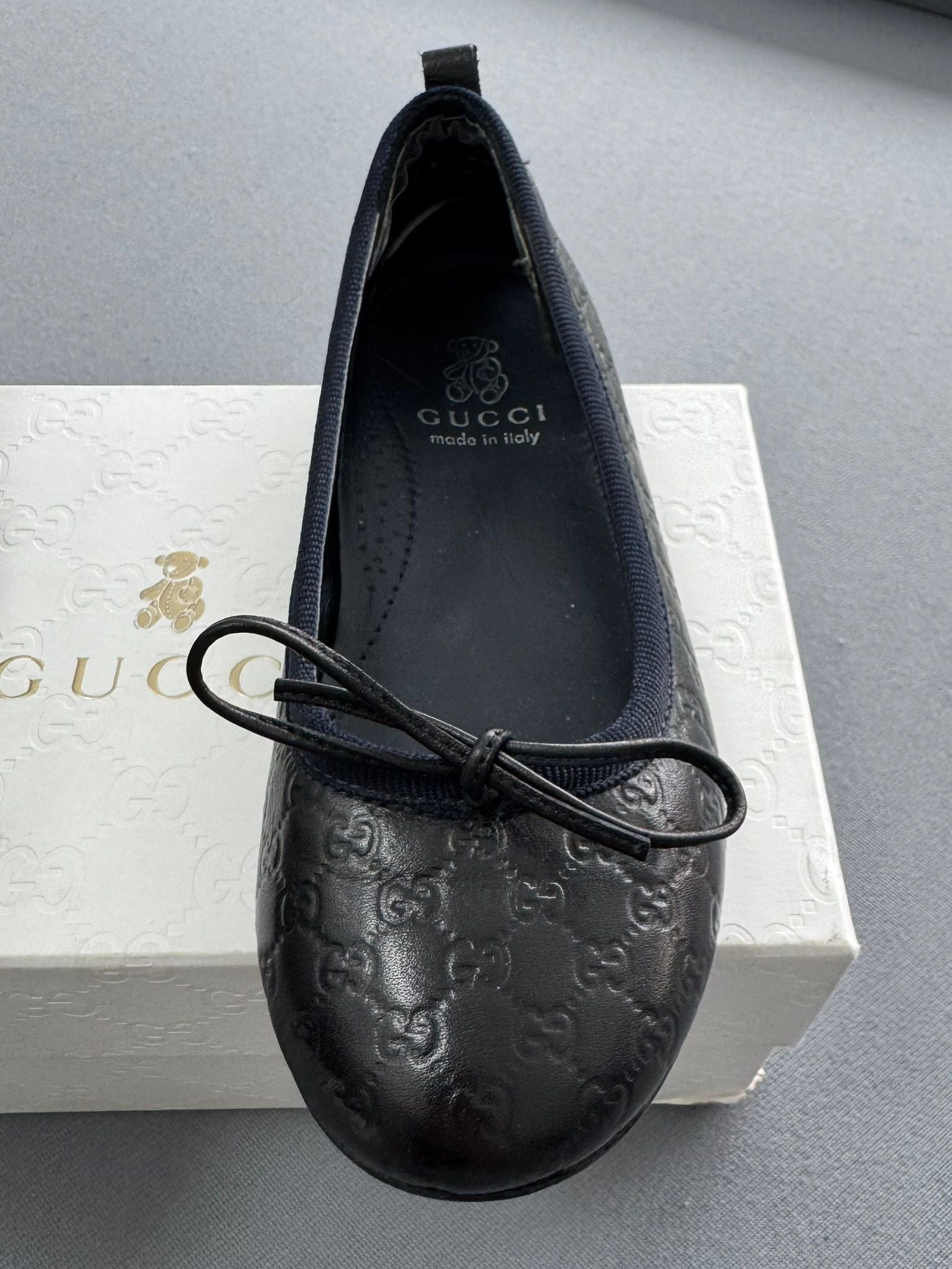 They are a Gucci creation, meticulously crafted from Guccissima leather and detailed with little bows.