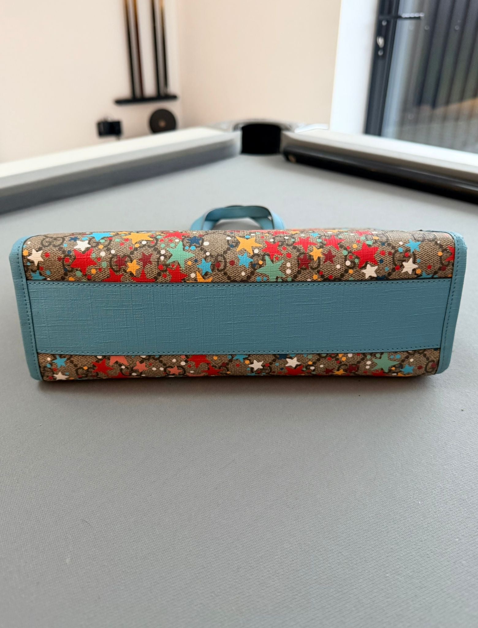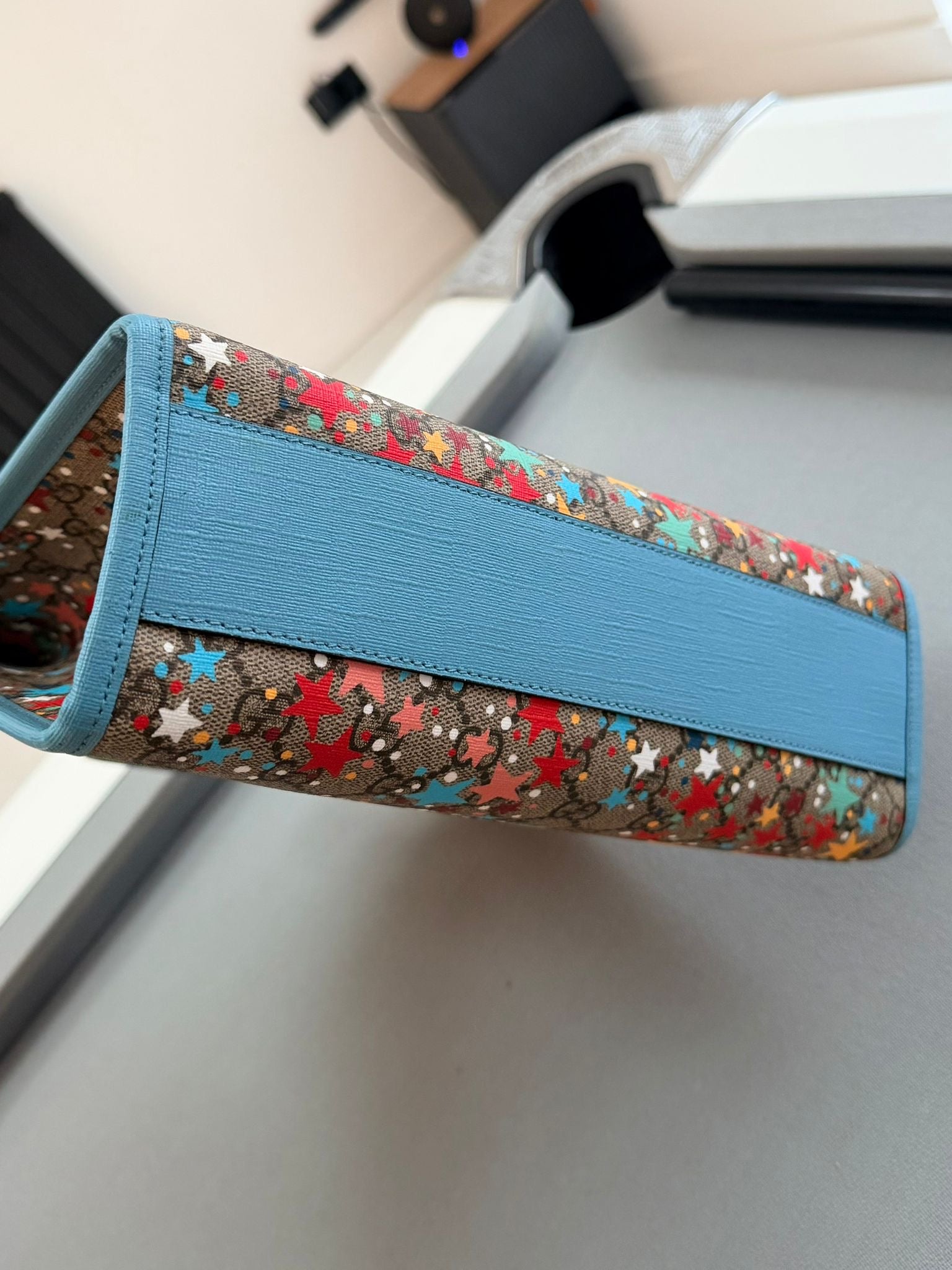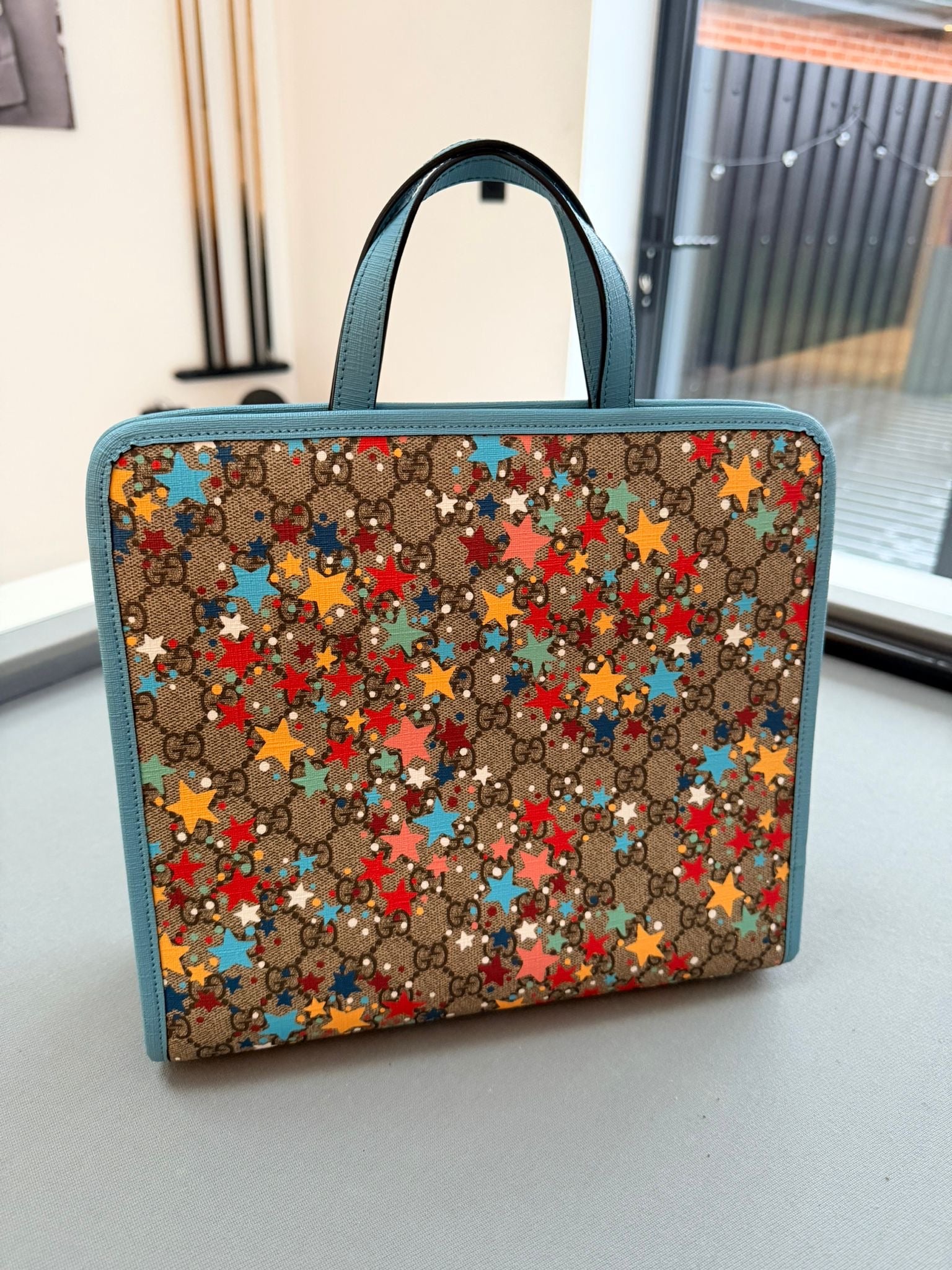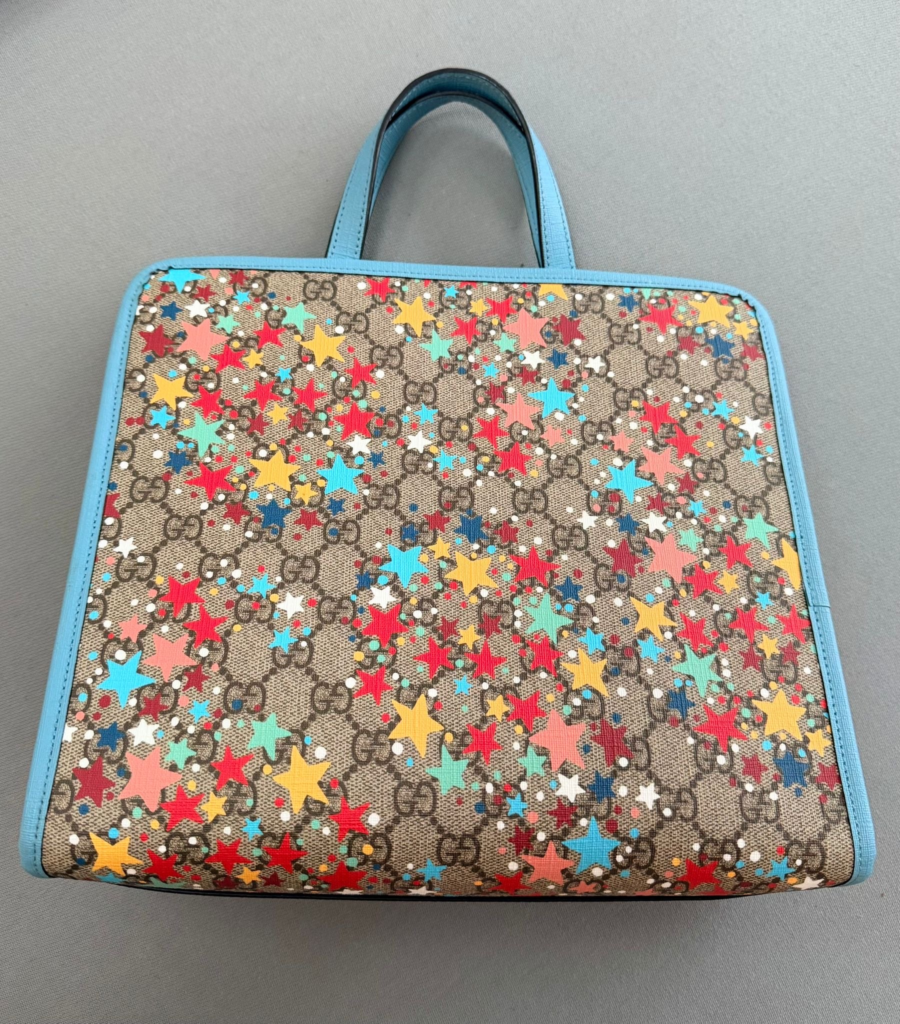 Gucci Children's Star Printed GG Tote Bag With Light Blue Leather Trim