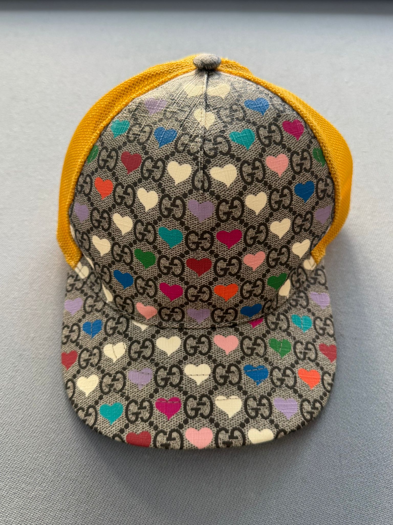 Gucci Kids' GG Heart Baseball Cap In Yellow - Size: M (54cm) Age 7-9