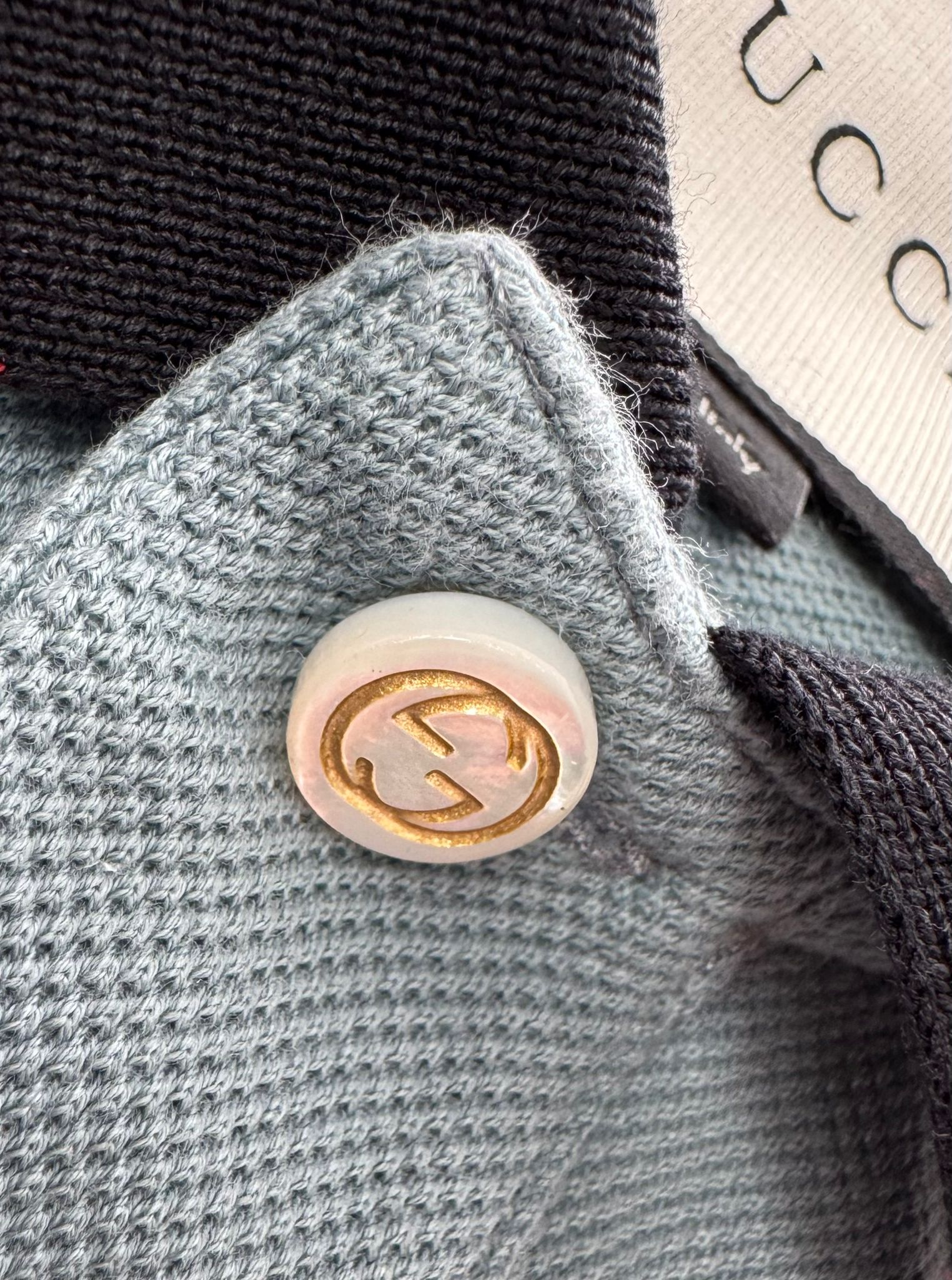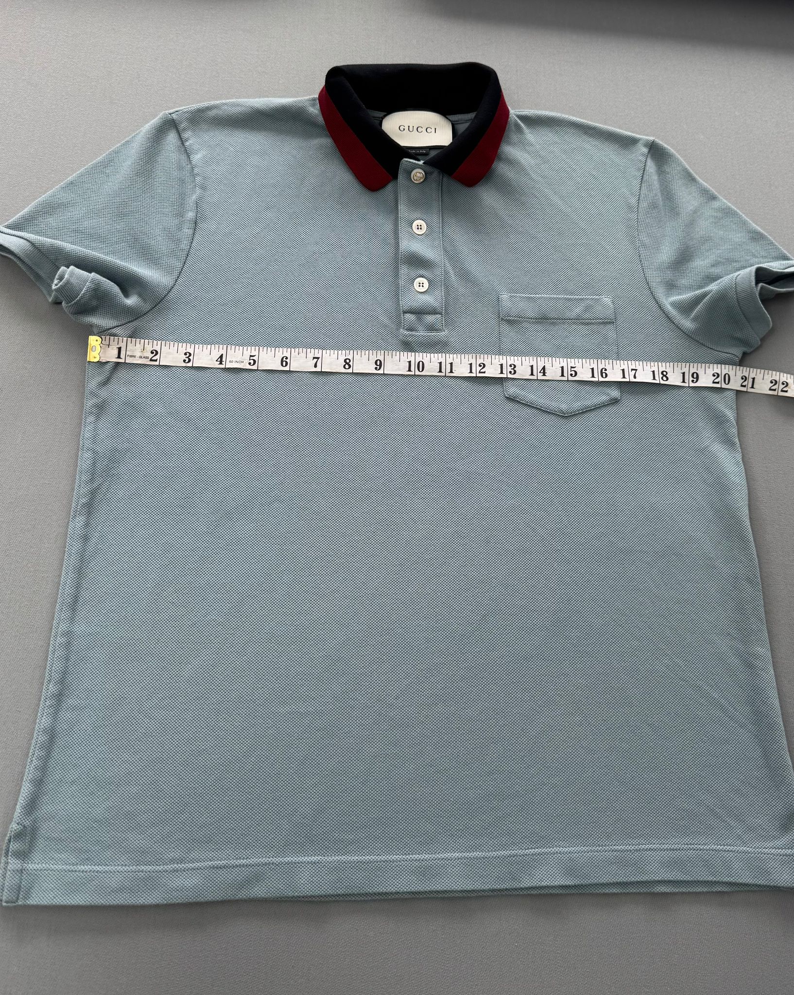 Gucci Pale Blue Honeycomb Knit Polo T-Shirt - Large - 20.5” PTP - Fits Medium