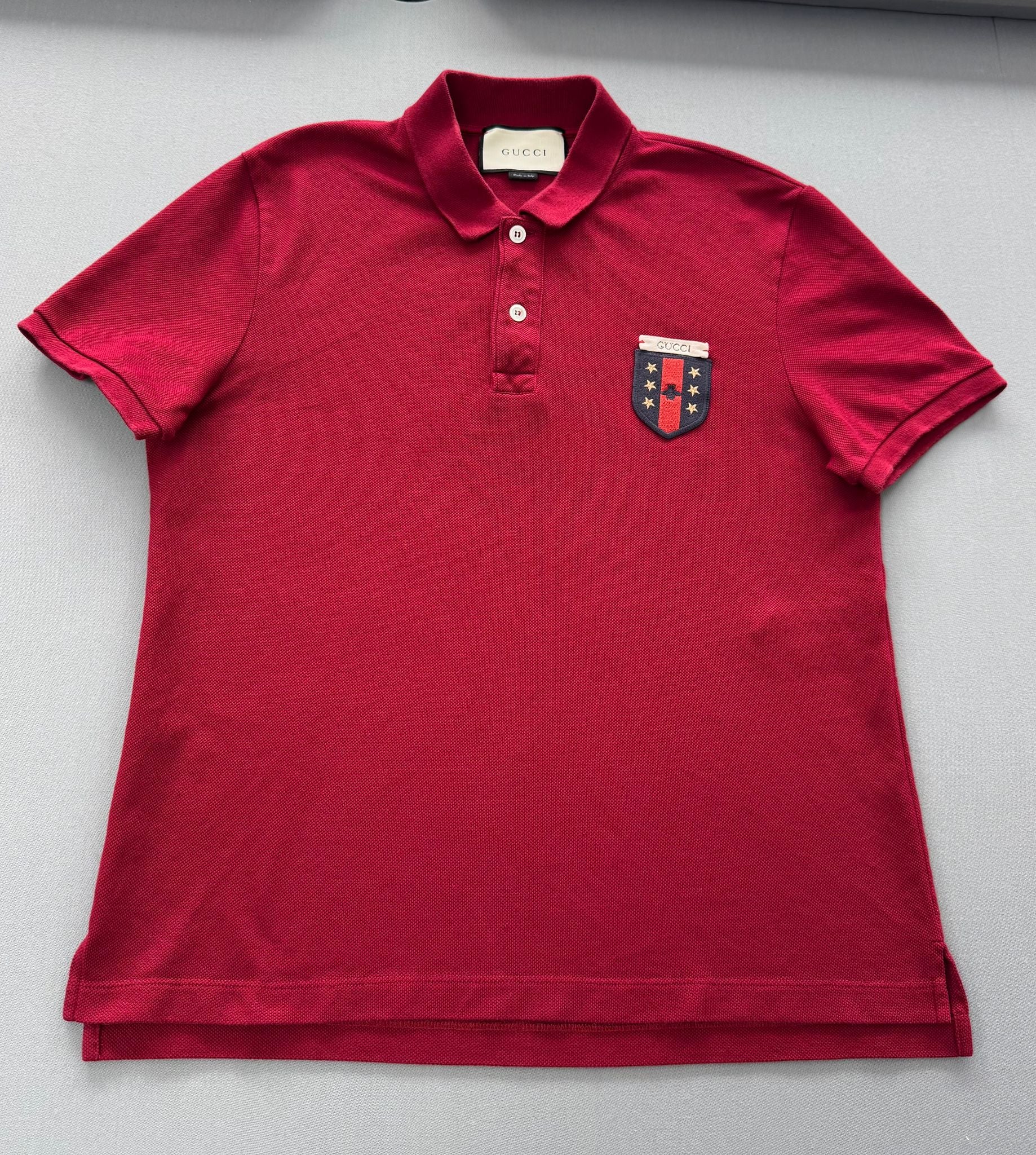 Gucci Red Bee Applique Detail Honeycomb Knit Polo T-Shirt - Large - 20.5” PTP - Fits Medium