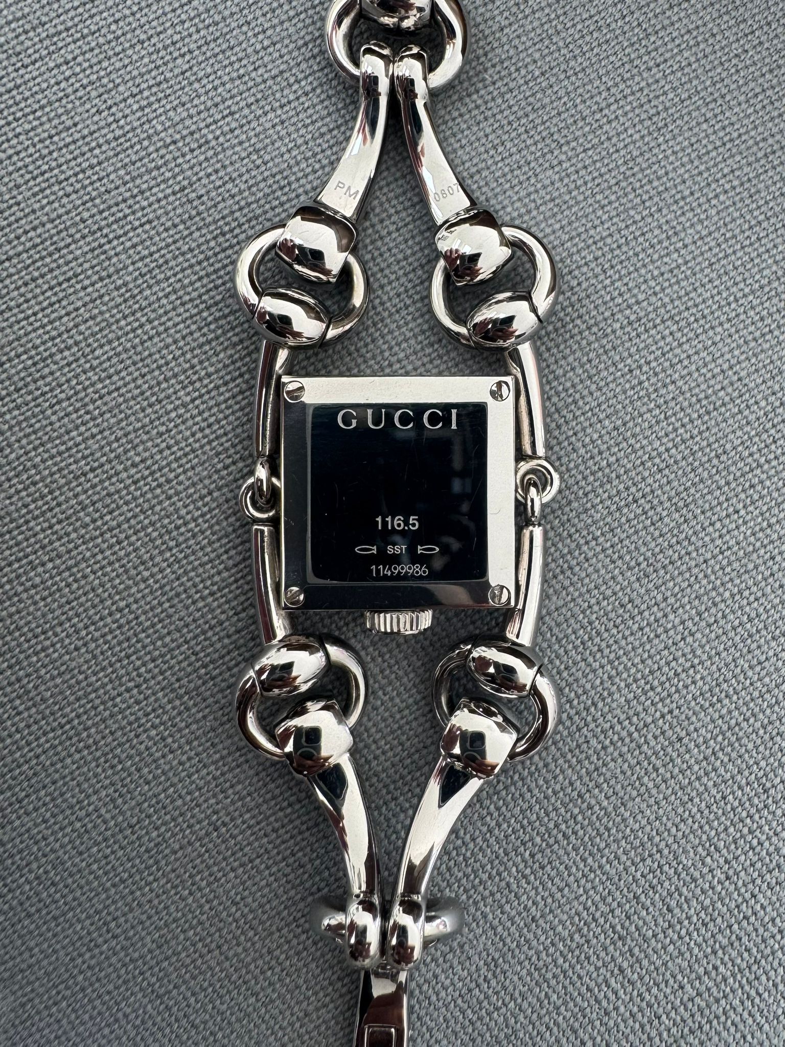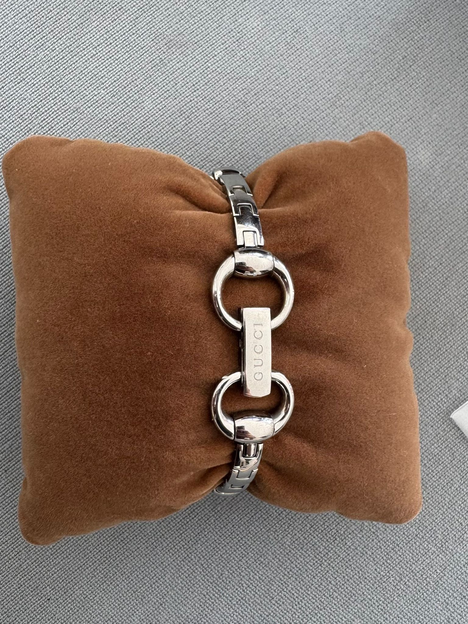 The case is then held by a stainless steel bracelet designed in their signature Horsebit.