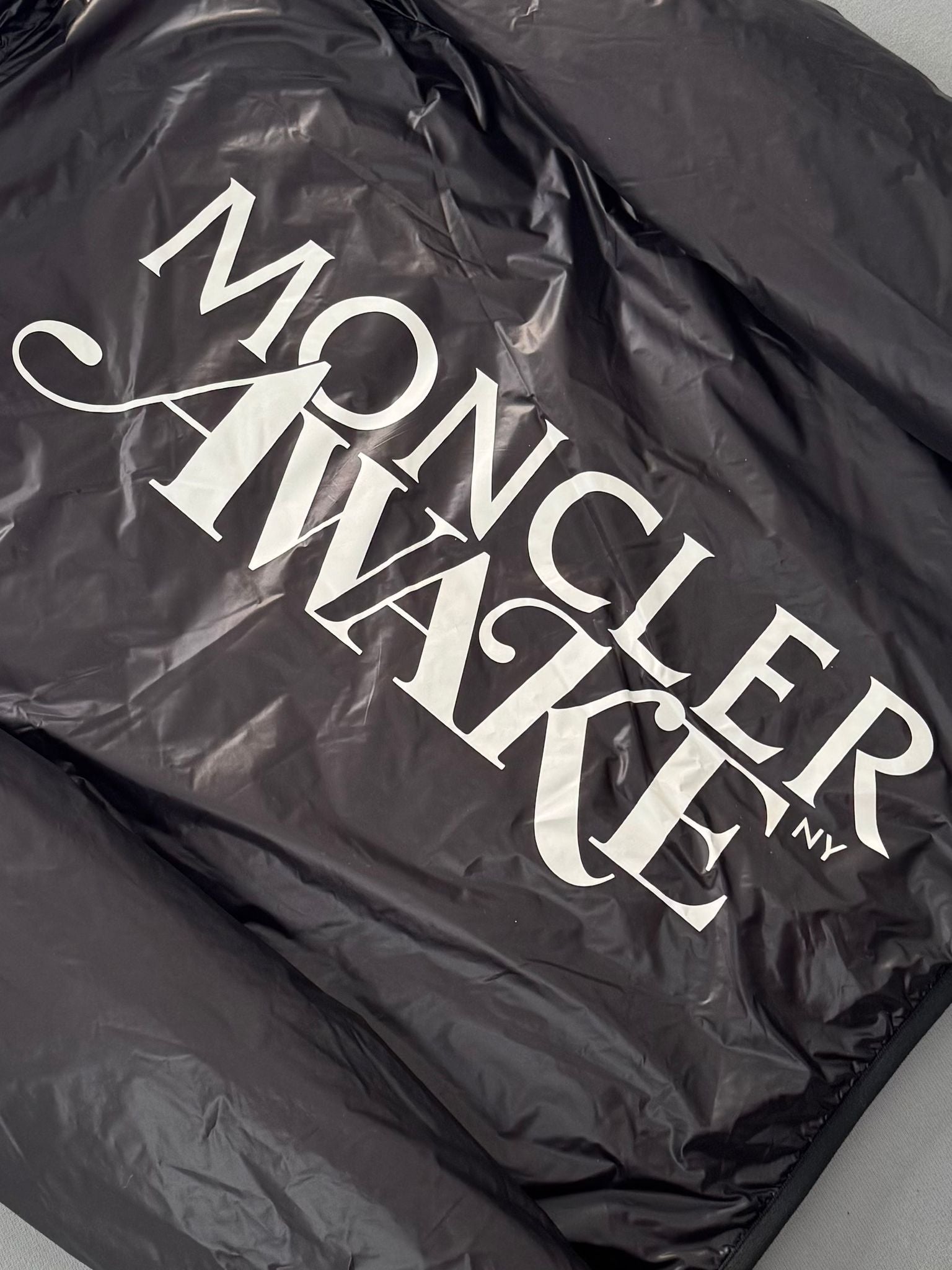 The Awake x Moncler LAU Down Jacket is a quilted, hooded jacket.