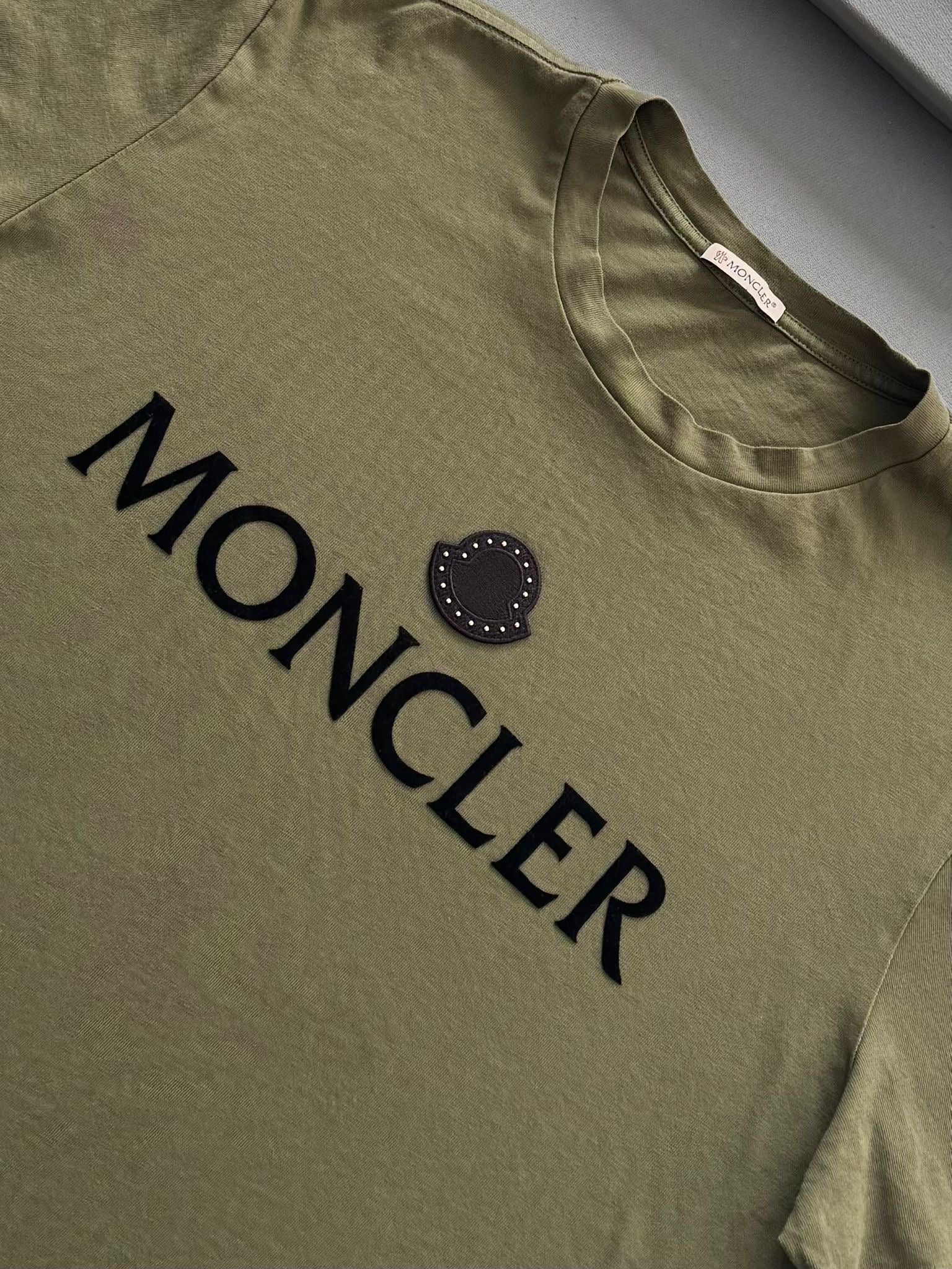 Moncler Khaki Branded Chest Cotton T Shirt - Size: XL