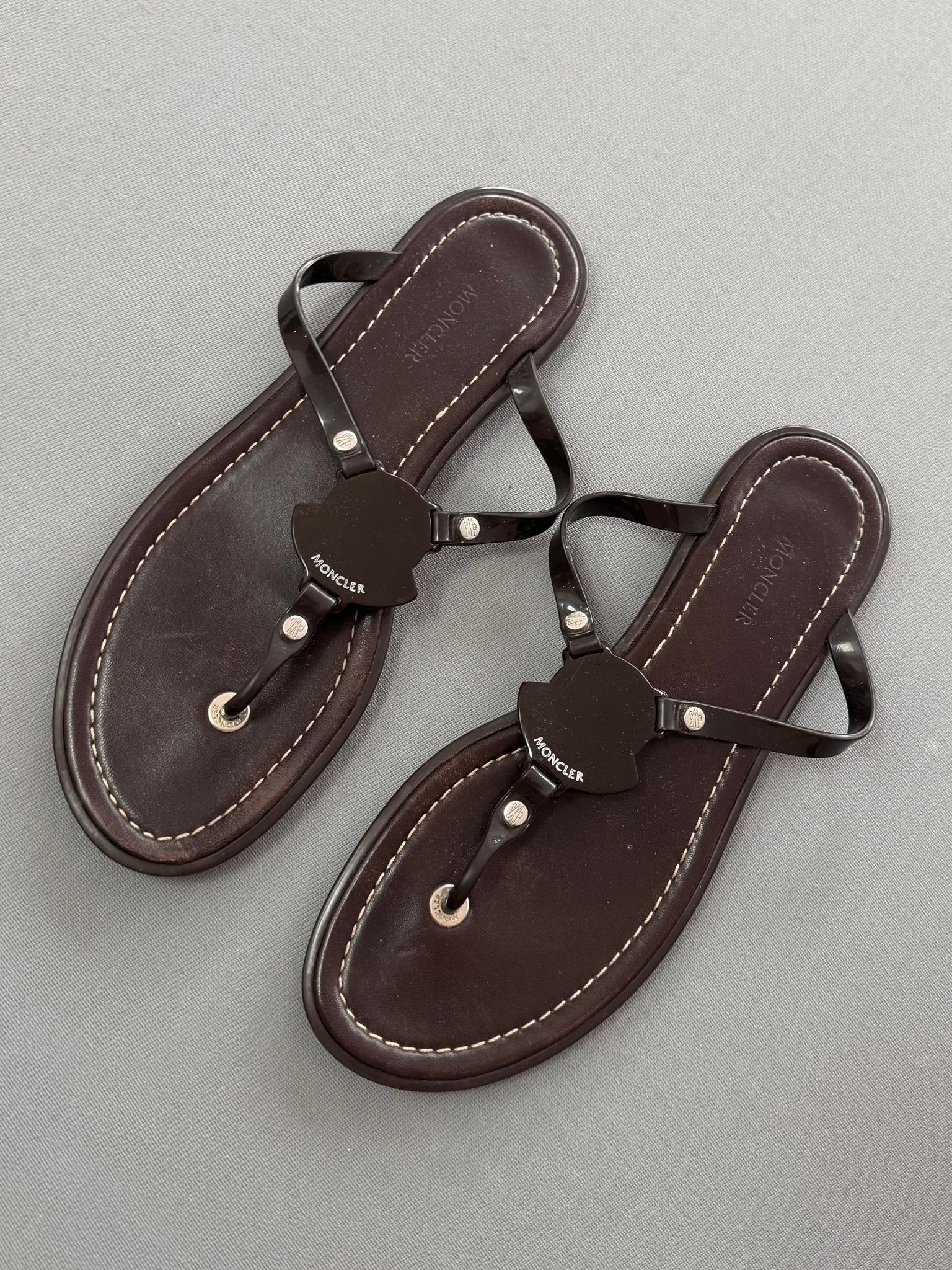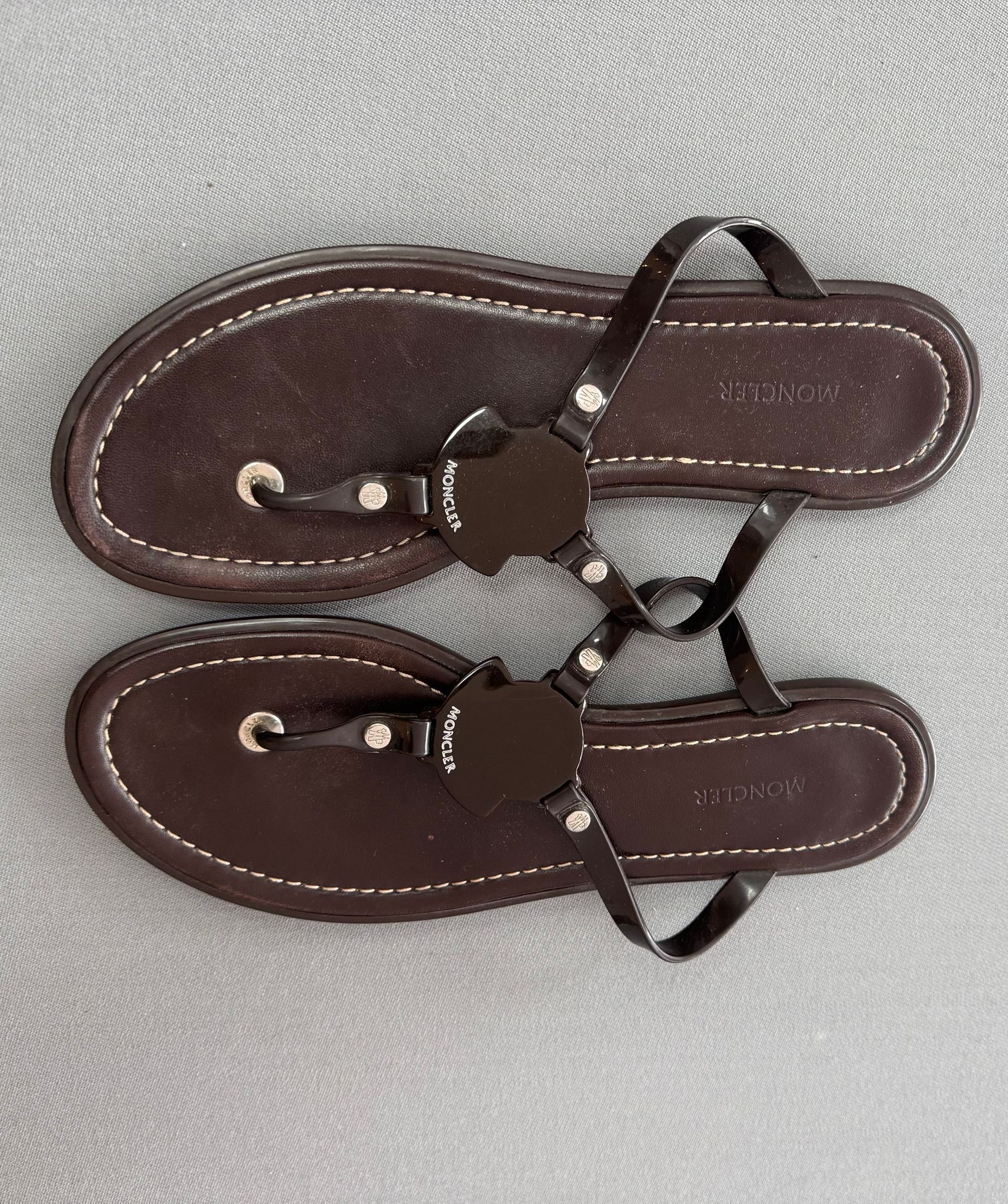 Moncler Brown Leather Sandals - Size: 6 (EU39)