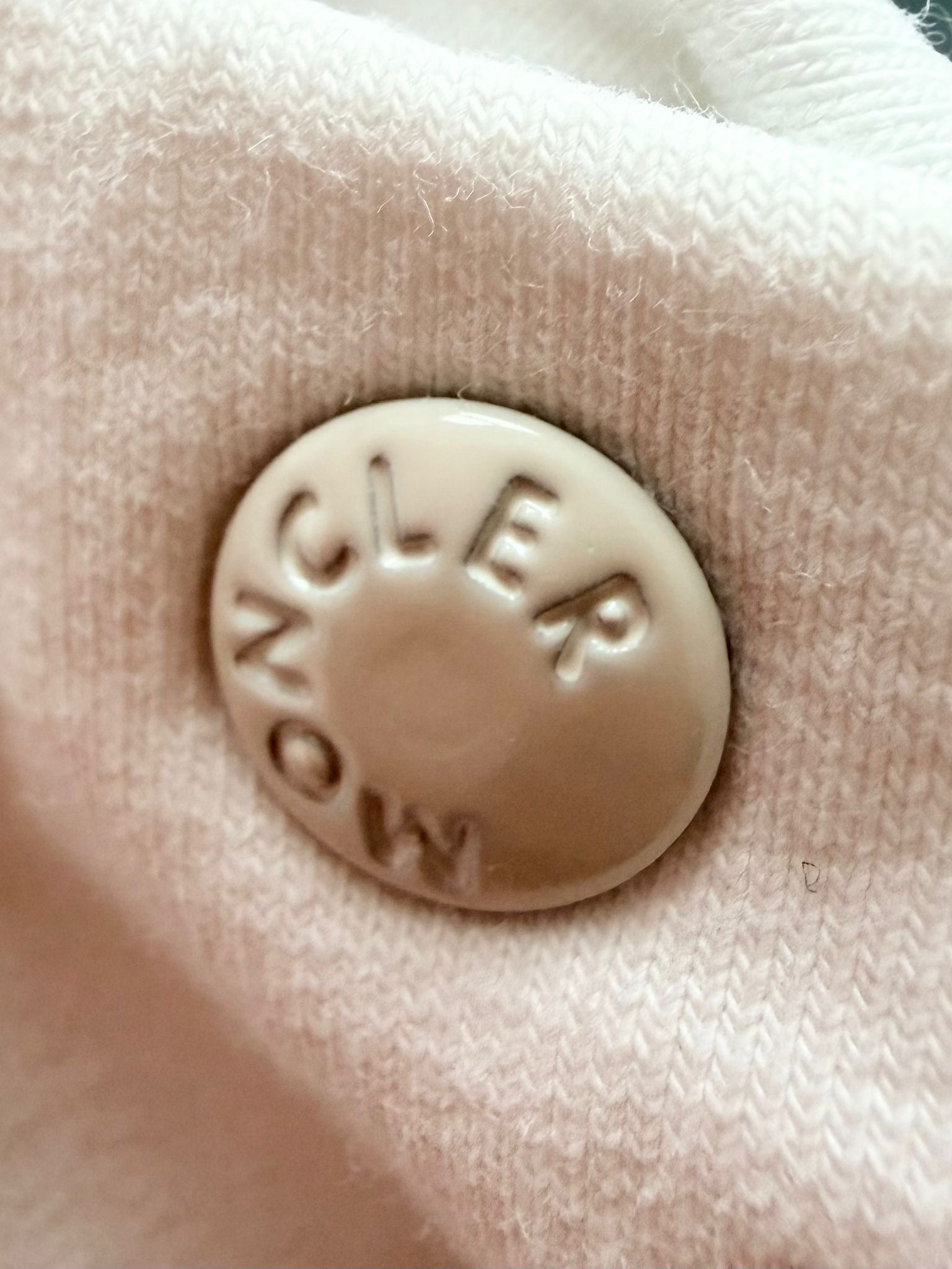 Moncler Enfant Baby White Spider-Man Sweatshirt & Lounge Pants Set, part of a collaboration between Moncler and Marvel. The set, made from cotton fleece, includes a sweatshirt with a red Spiderman graphic patch and lounge pants.
