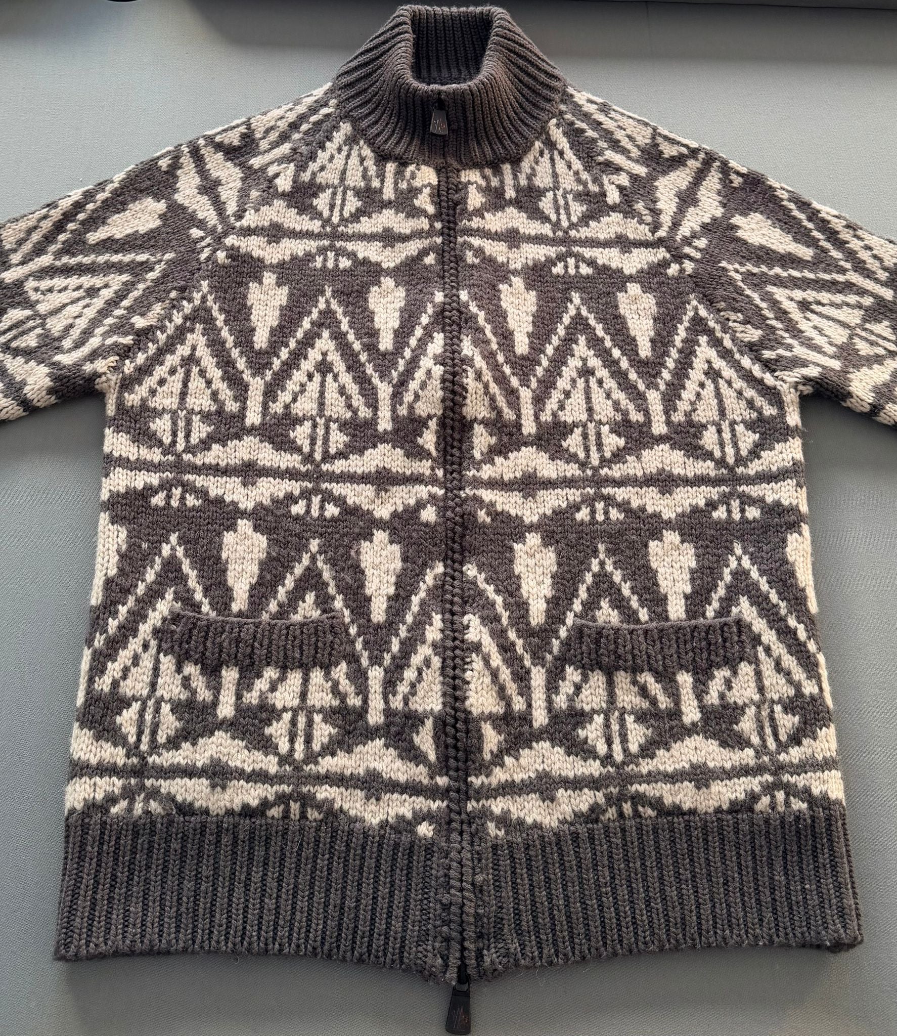 Moncler Grenoble Maglione Tricot Heavy Knit Grey Patterned Cardigan - Size: XL