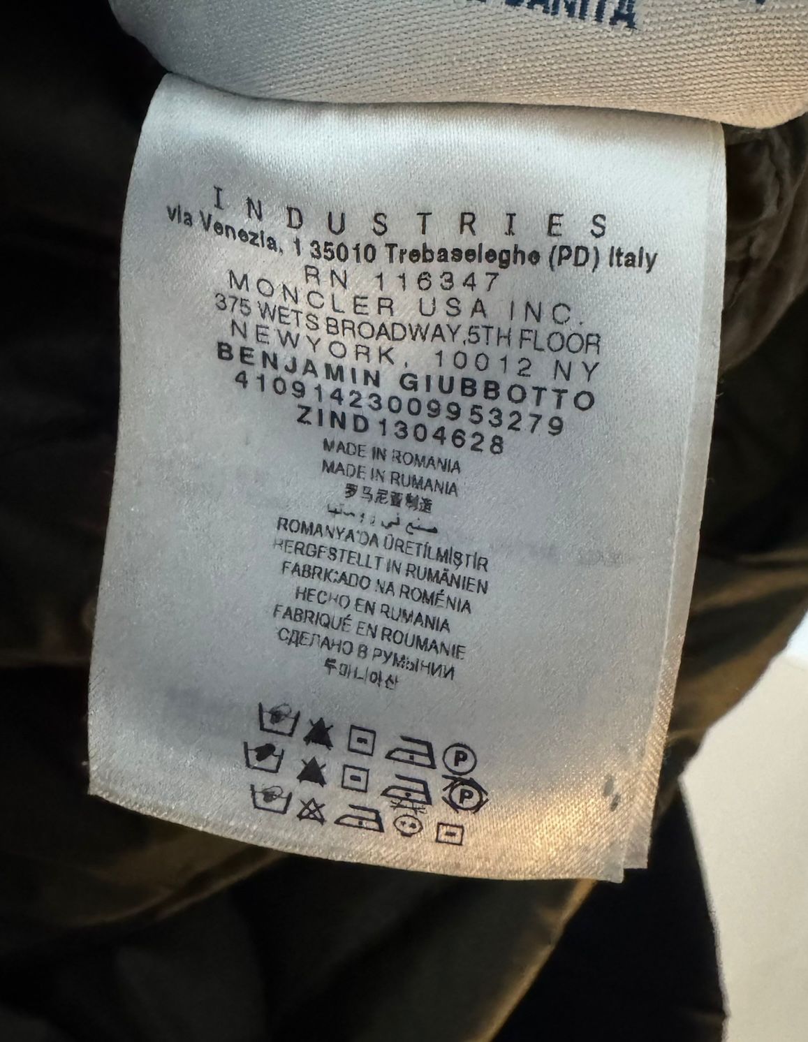 A long down puffer jacket from Moncler the Benjamin. The jacket features a full zip fastening and button overlay. the bottom and top pockets are both buttoned and the cuffs are adjustable.
