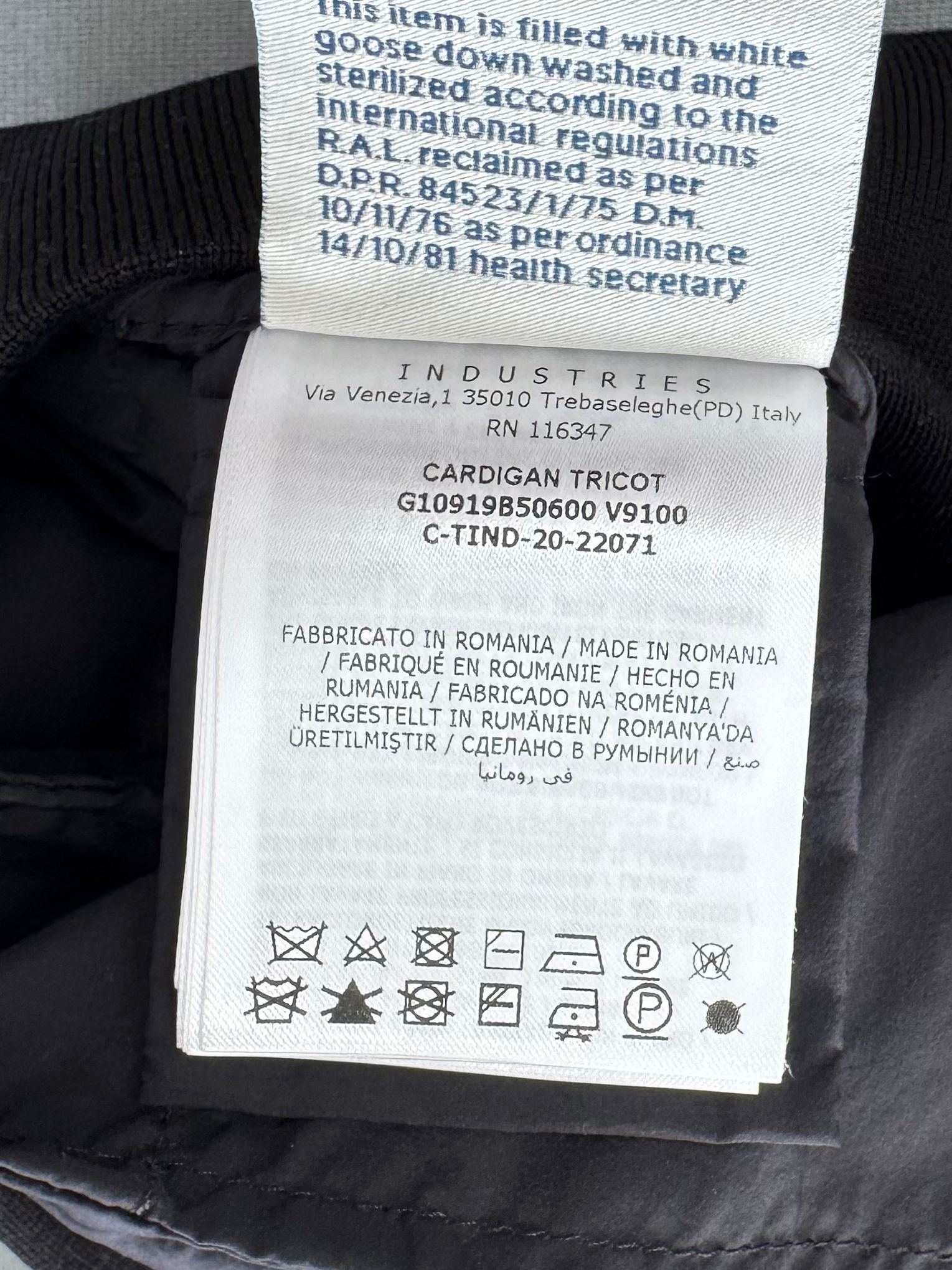 Lining: Polyamide 100%, Goose Down 90%, Feather 10%