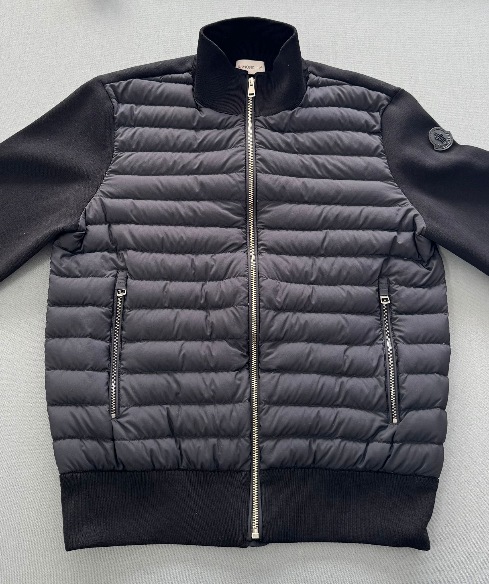 Moncler Navy Tricot Padded Contrast Sleeve Cardigan - Medium - PTP 20.5''
