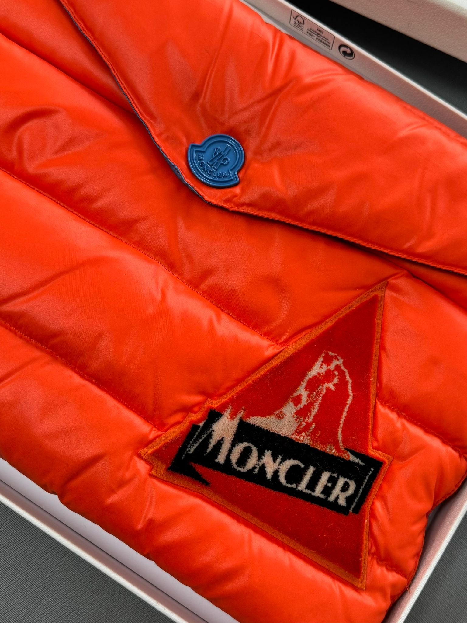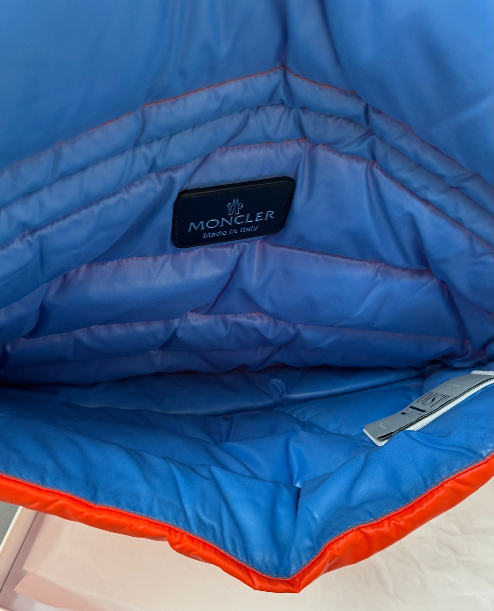 Moncler Puffer Down Busta Piumino Clutch/ Laptop Sleeve In Orange - Brand New In Box