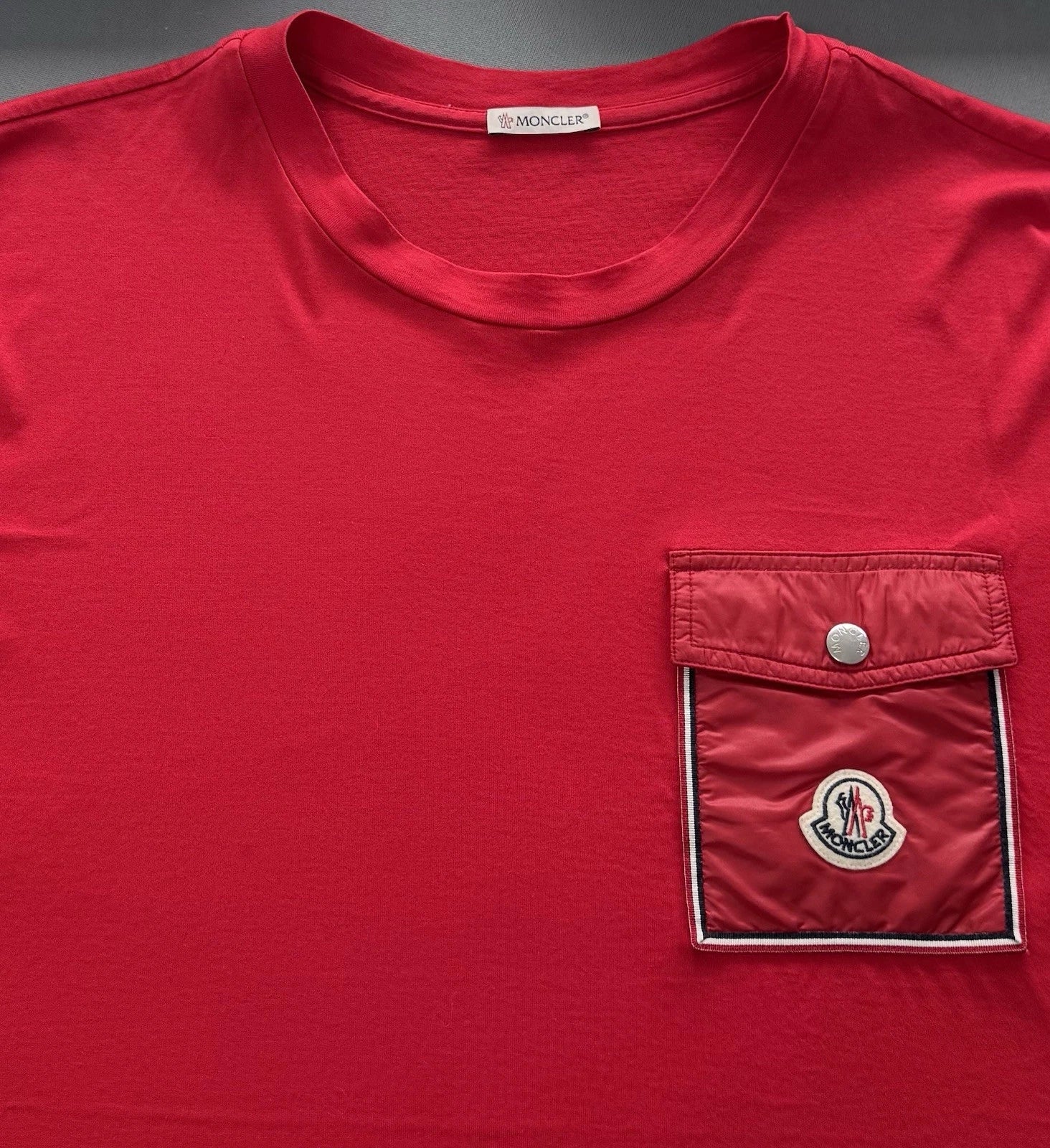 Moncler Red Patch-pocket Cotton Jersey T-shirt - Medium Fits Large - 23.5” PTP