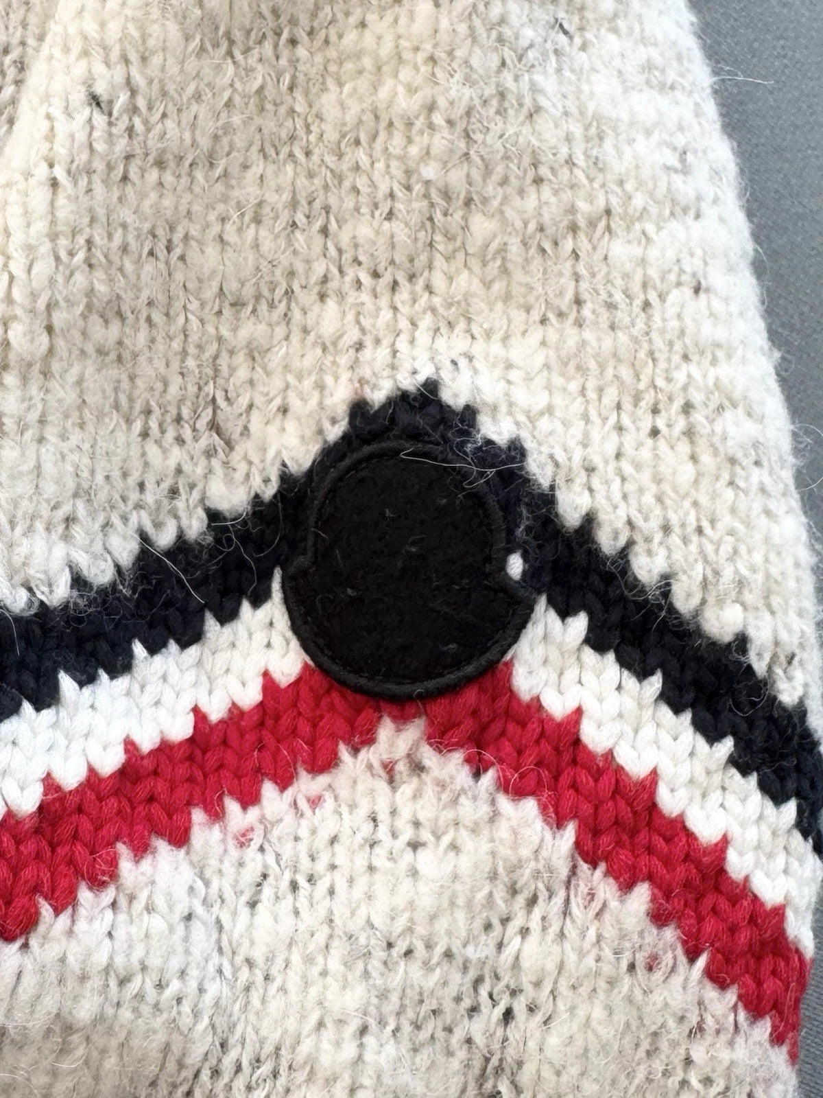 Moncler Stripe Beige Wool And Alpaca Blend Sweater - Size: XL (21” PTP)