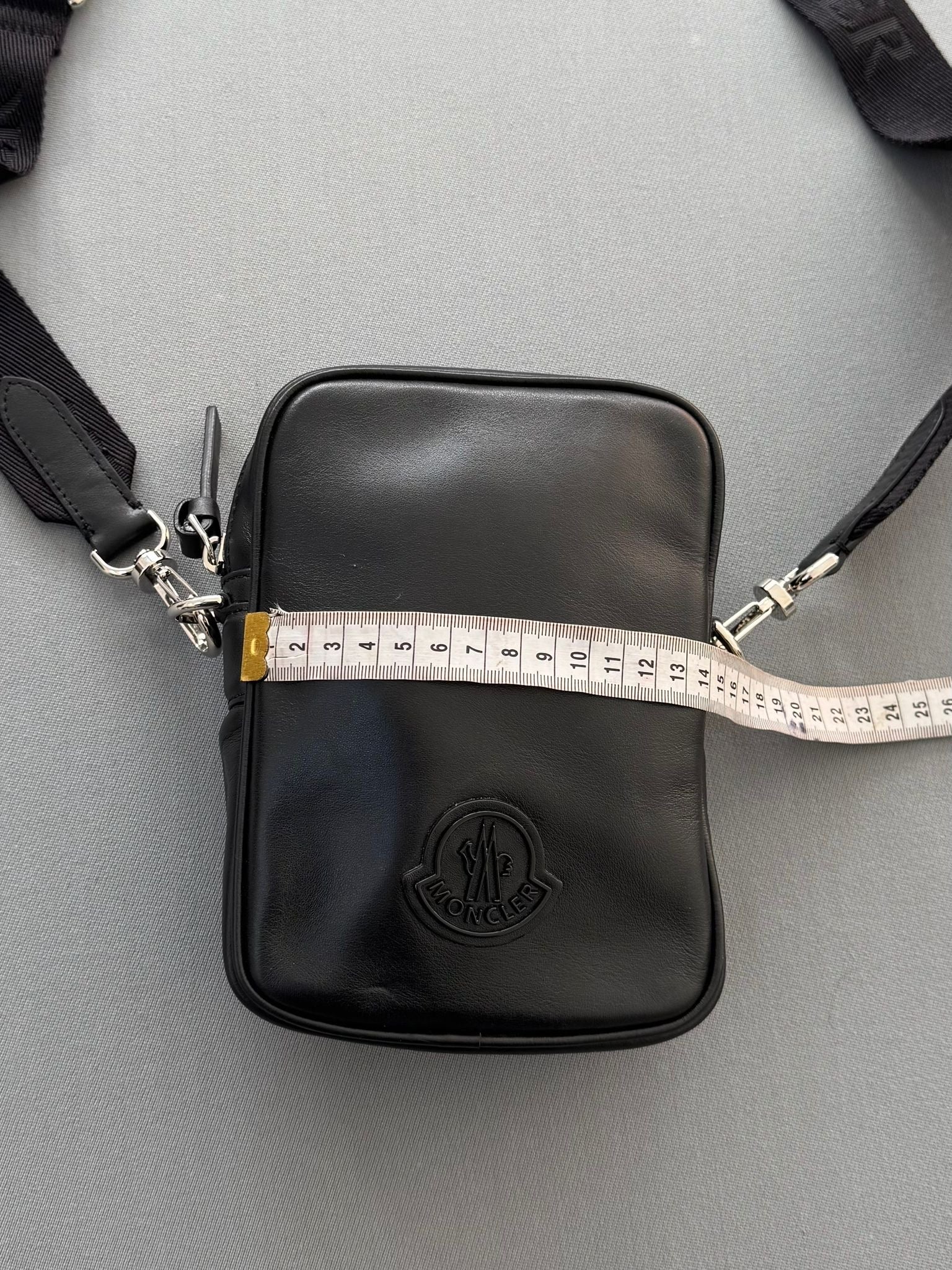 Detachable and adjustable logo webbing cross body strap.