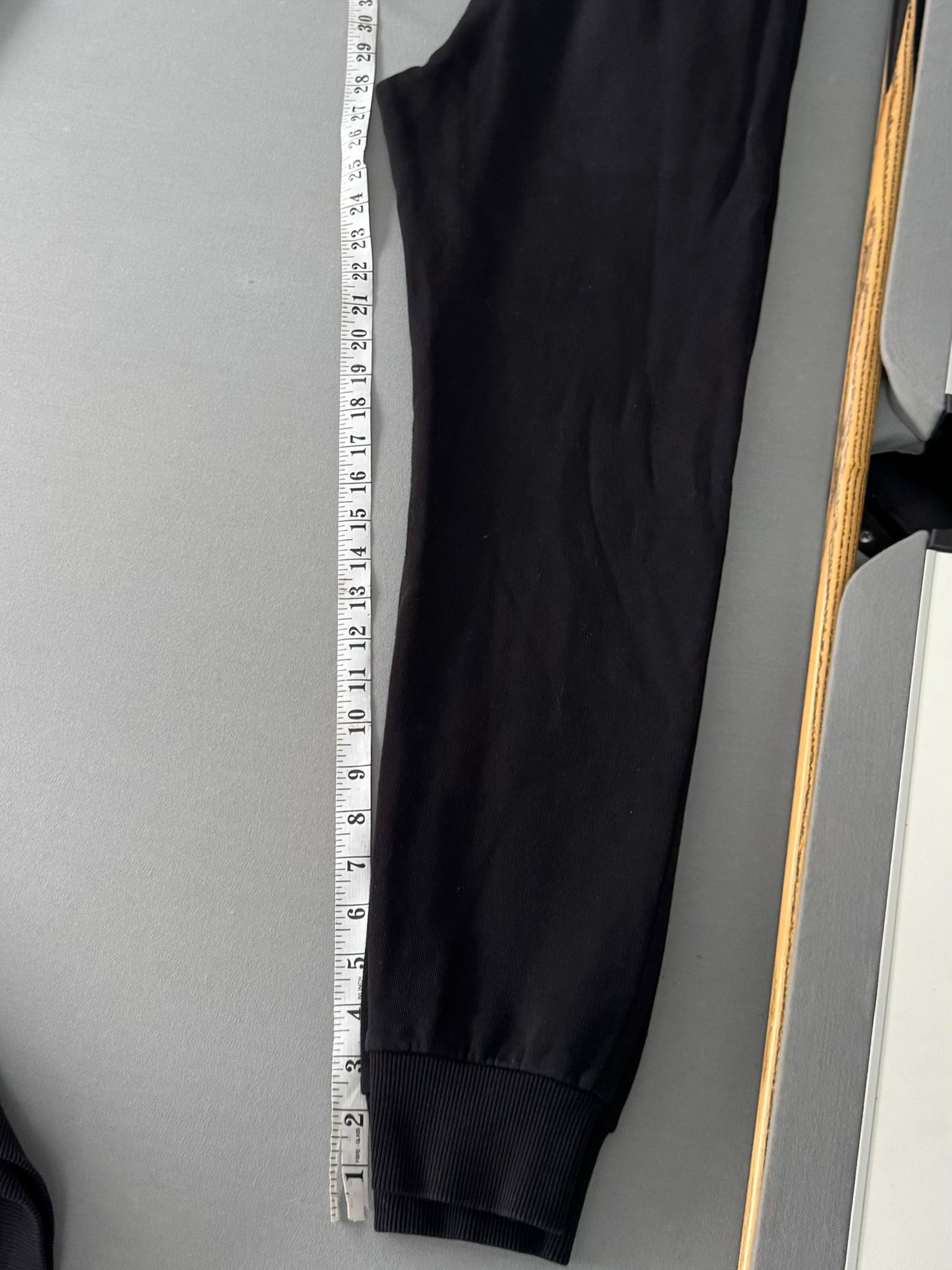 Jogging bottoms: relaxed fit, mid rise, tapered leg, elasticated waistband, two slip pockets at front, brand tab at back, brushed interior, ribbed elasticated cuffs