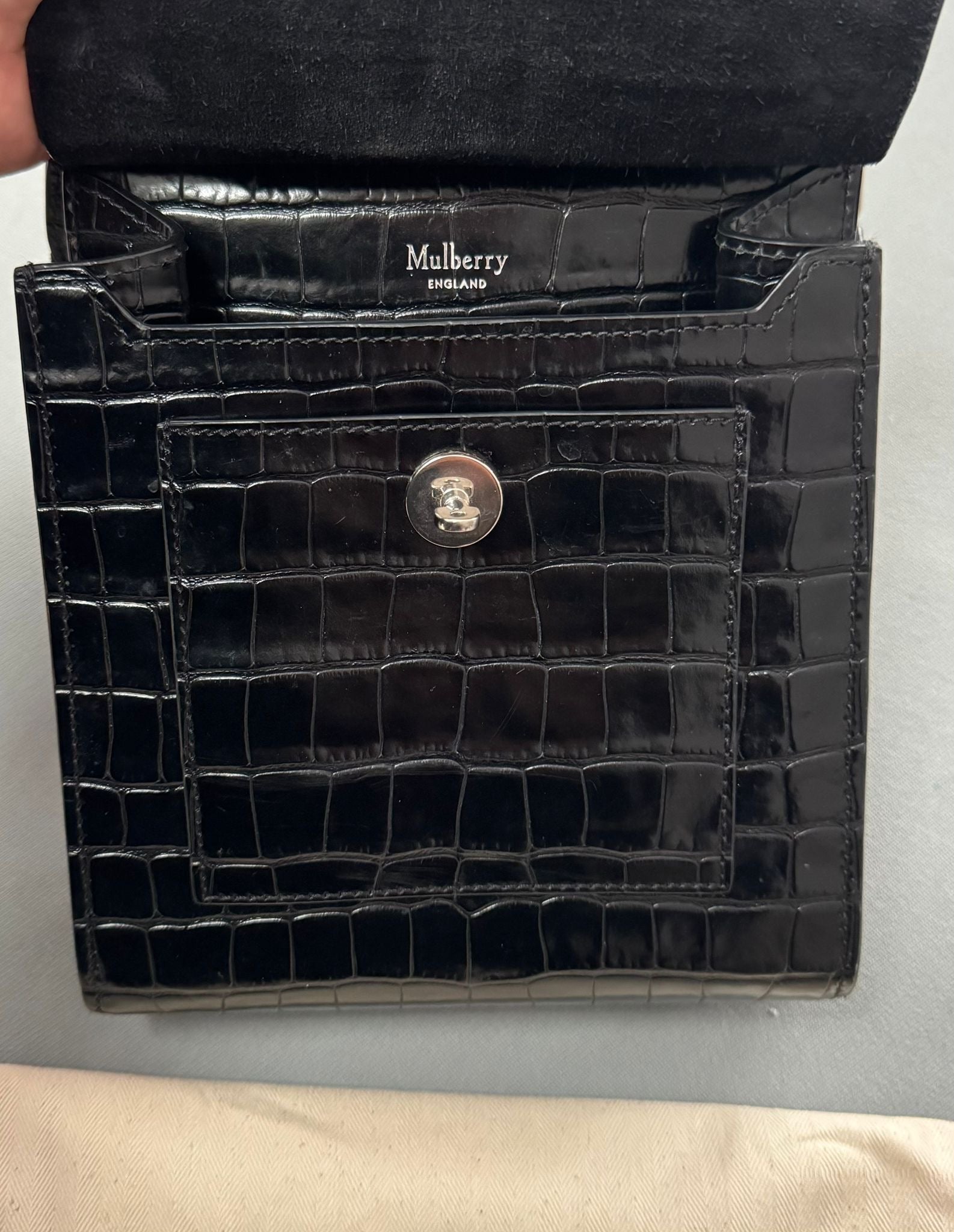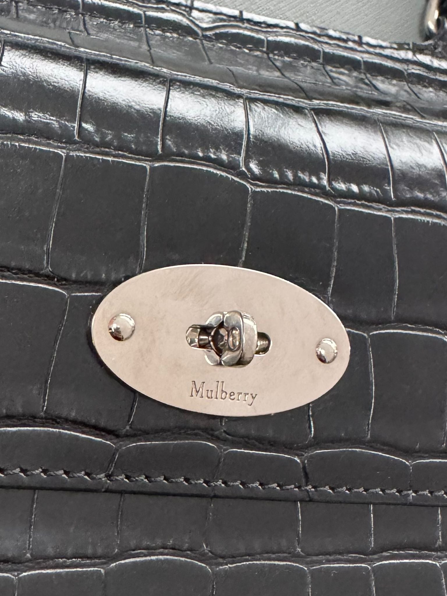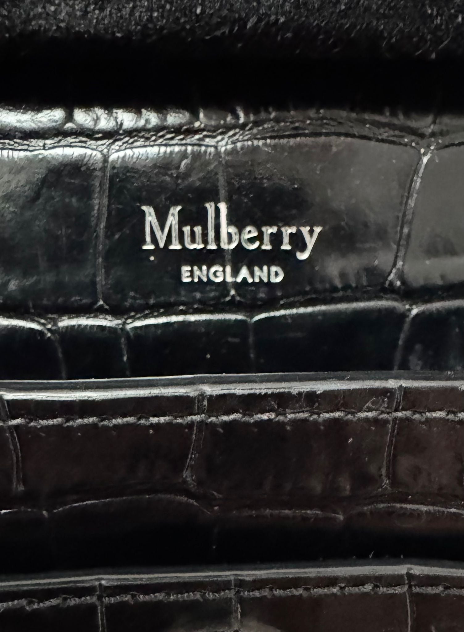 Mulberry Black Shiny Croc Embossed Anthony Satchel Bag
