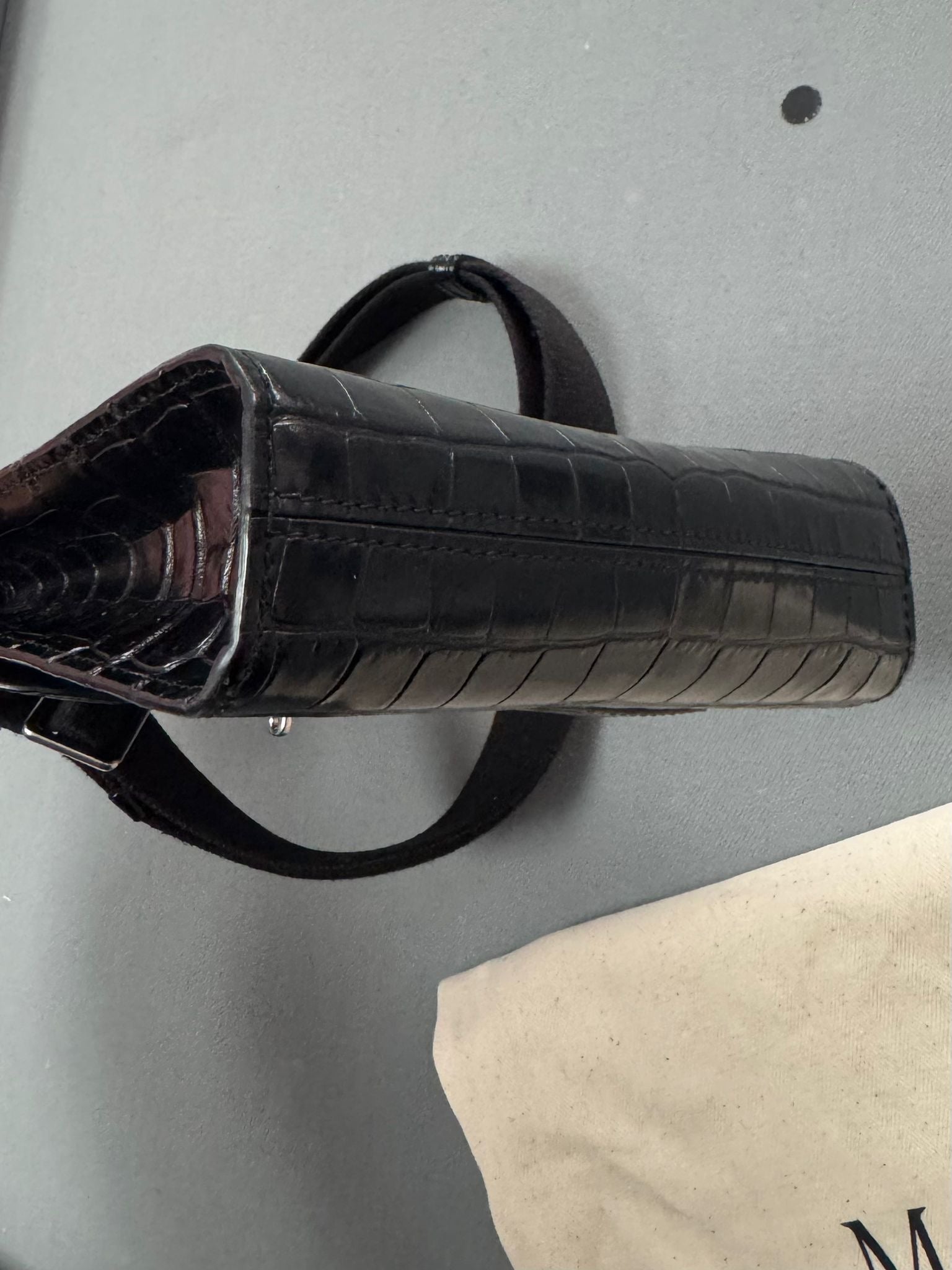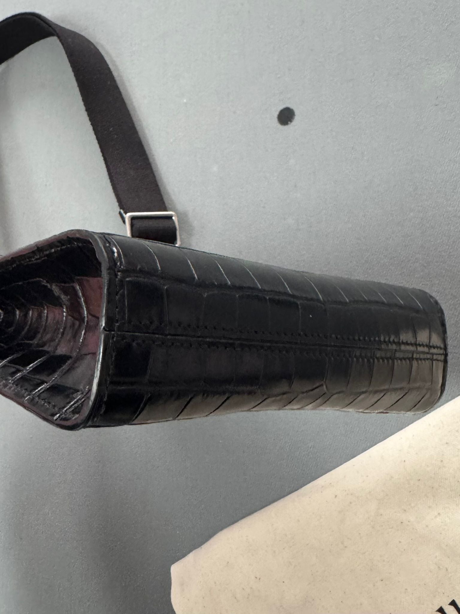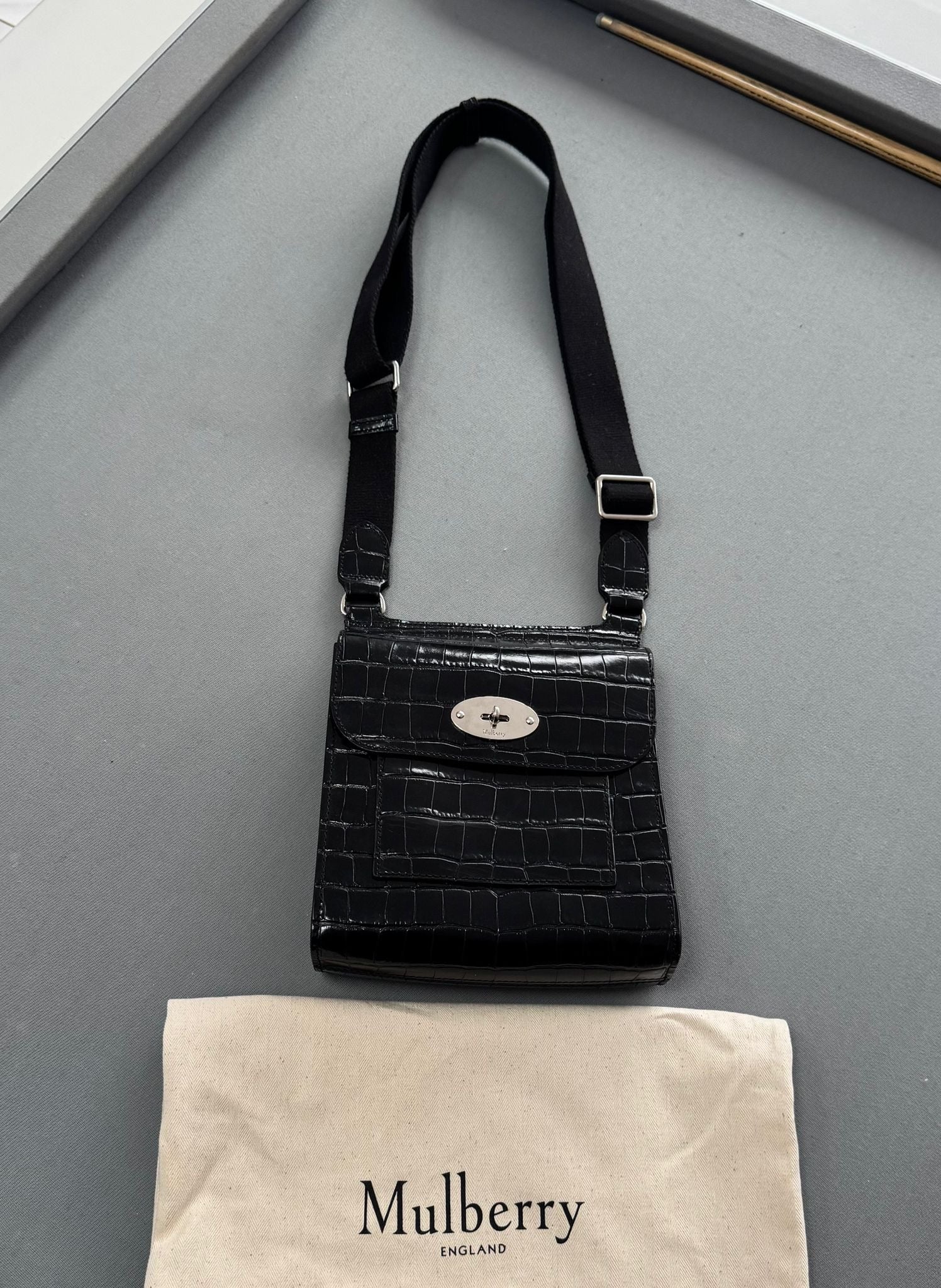 Mulberry Black Shiny Croc Embossed Anthony Satchel Bag
