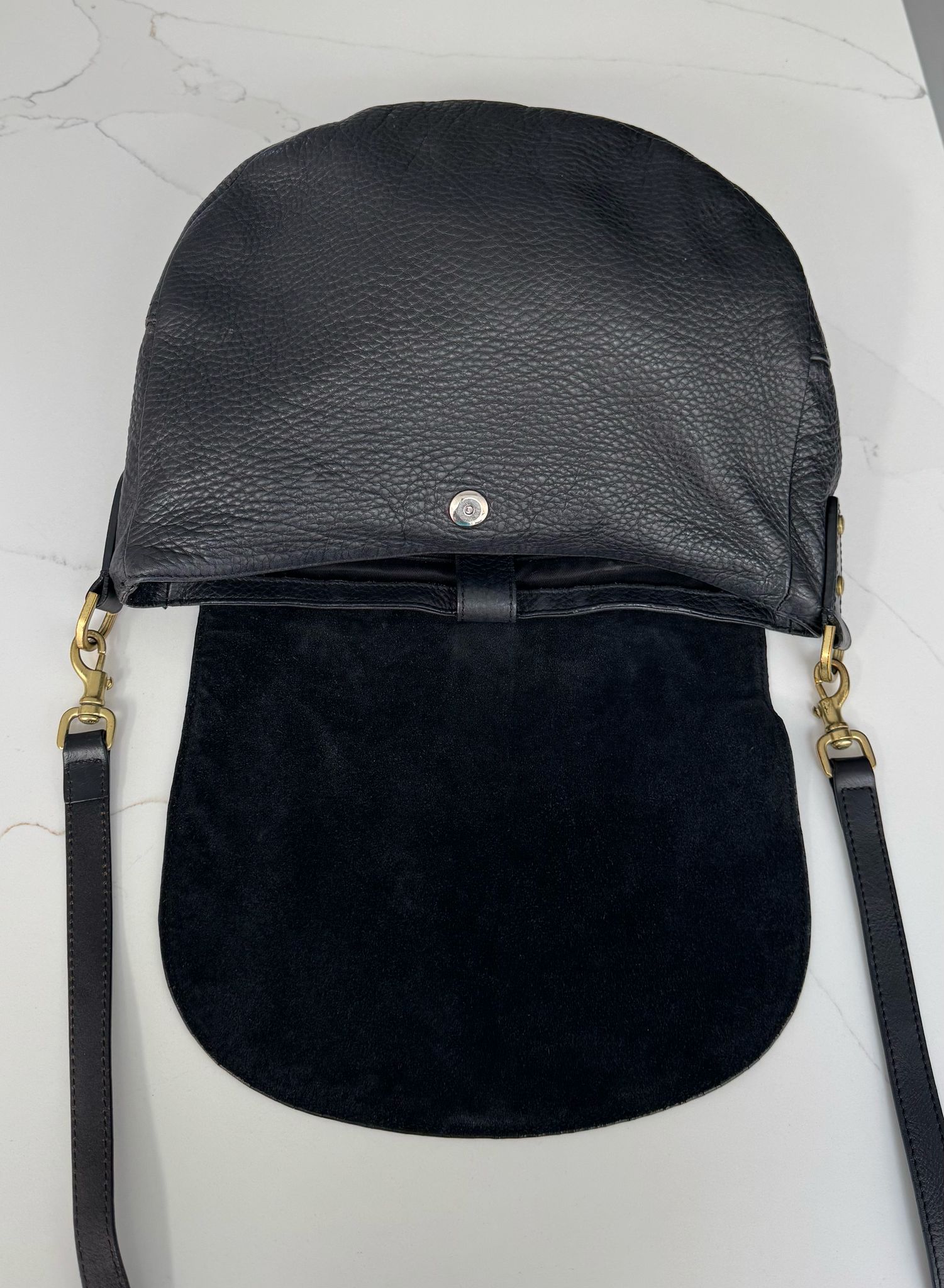 Inside, it is lined with clean black Mulberry tree fabric, featuring a leather-trimmed slip pocket and a zip compartment.